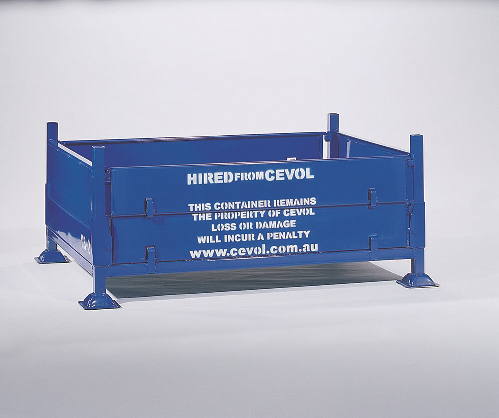 Each stillage hired out by Cevol Industries is in a safe usable condition, stenciled with the maximum capacity and stacking height.