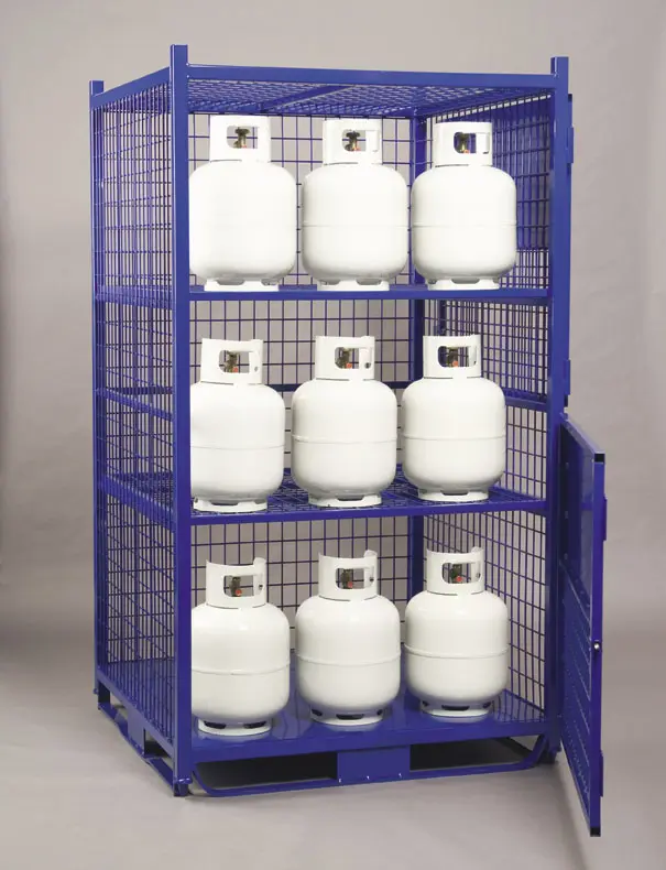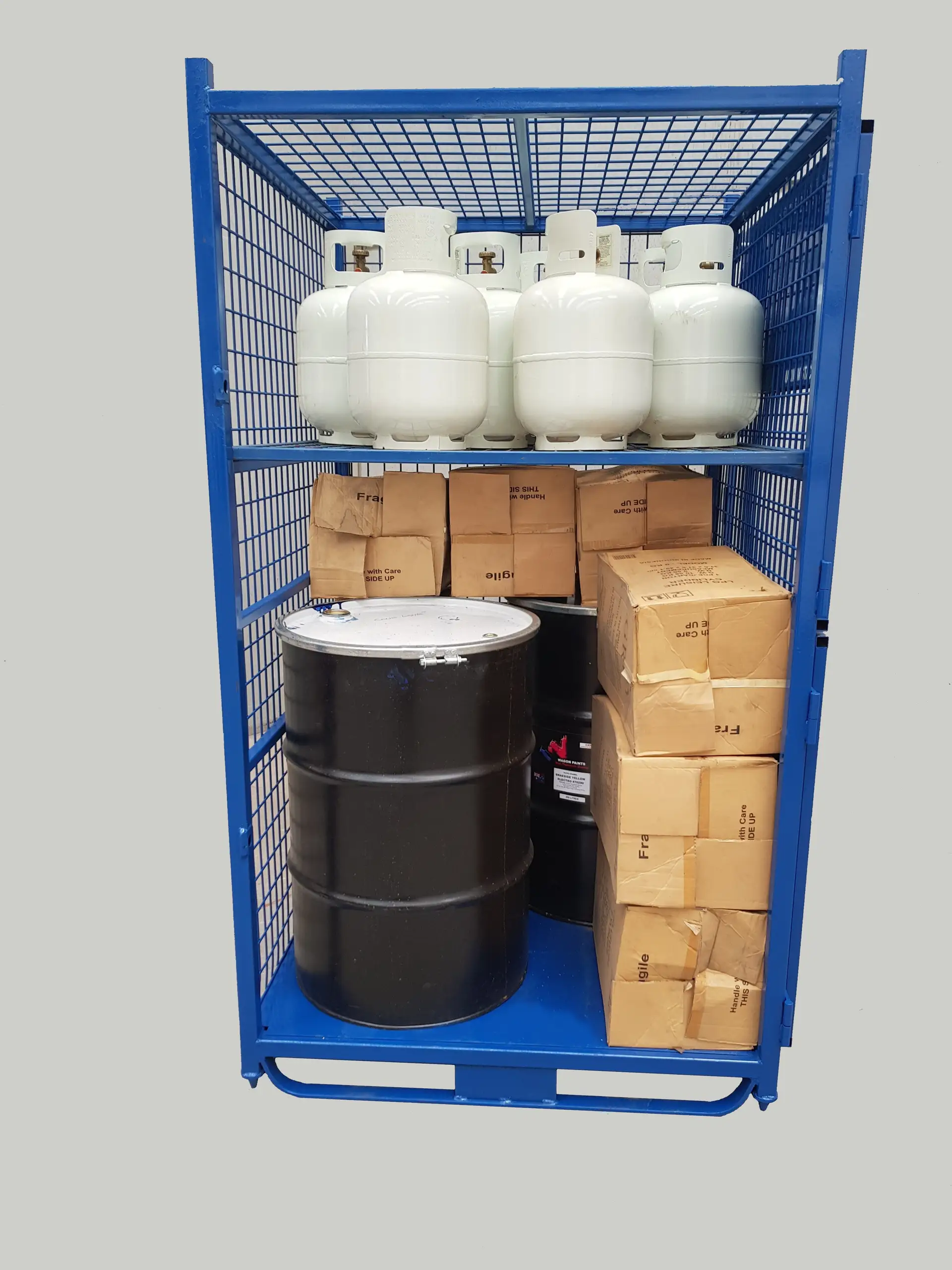 Sheet base, fixed post, fully enclosed mesh stillage.