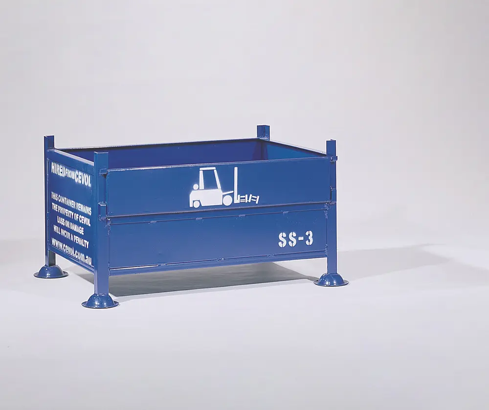 Each stillage hired out by Cevol Industries is in a safe usable condition, stenciled with the maximum capacity and stacking height.